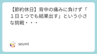 ブログ作成 【節約休日】背中の痛みに負けず「1日1つでも結果出す」という小さな挑戦・・・